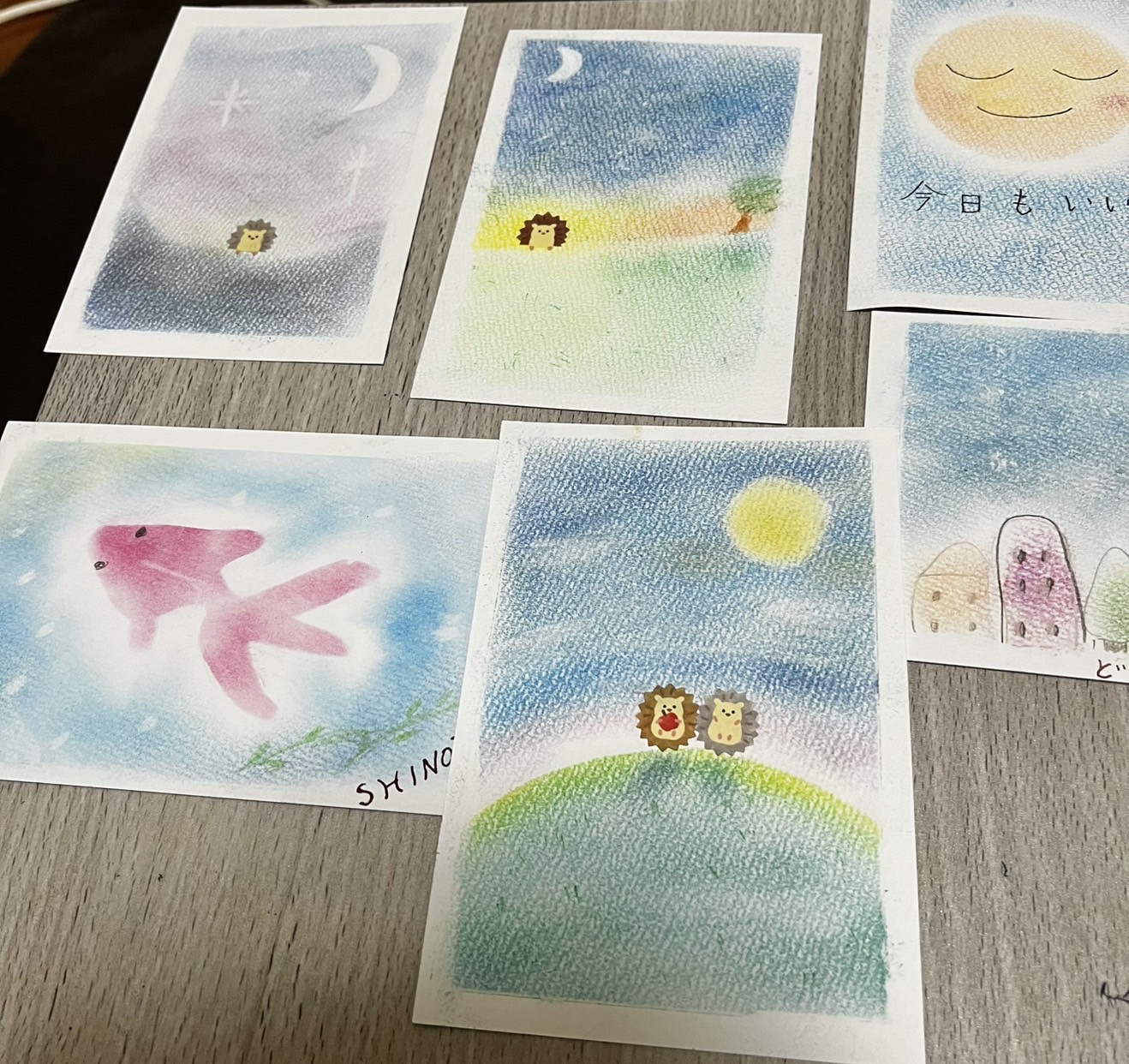ハガキの大きさsizeで初心者でも楽しくできますすよ~(^_-)-☆、自分のメッセージも入れてとても癒しのカードができます。